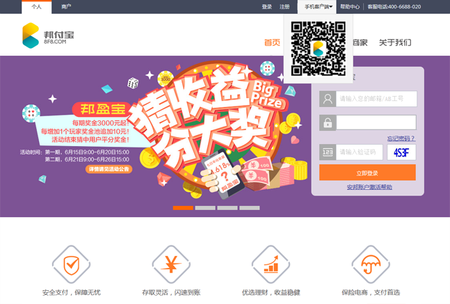 邦付宝是大家保险集团的战略合作伙伴,通过邦付宝可以实现员工薪金发放、余额理财等综合化金融服务。邦付宝注册分为邮箱注册、实名鉴权、绑定银行卡、手机绑定等流程,请按照本手册提示进行。