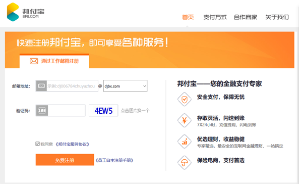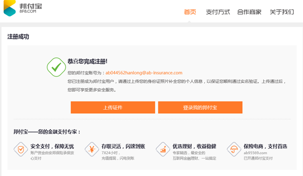 跳转到邦付宝注册页面,第一次访问需要安装安全控件,具体可参考: