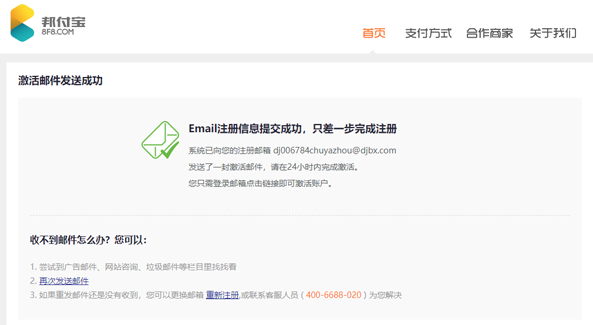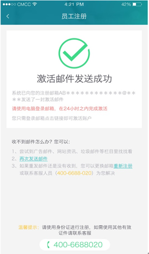 点击注册,成功后进入下面页面,需电脑端登录公司邮箱查看邮件。