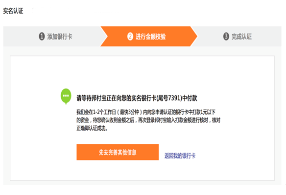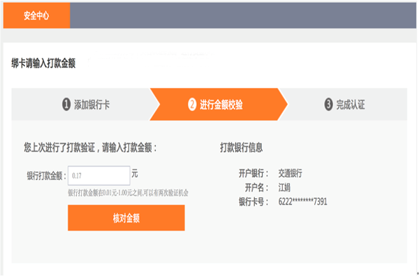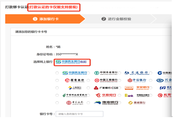 (注:打款认证方式绑定的银行卡仅能支持提现,无法做充值或消费使用。)