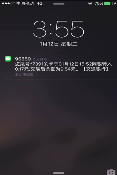 交易,确定收到的该笔金额数字(如图 显示金额为0.17元)(注:若用户未接受银行提供的到账短信提醒