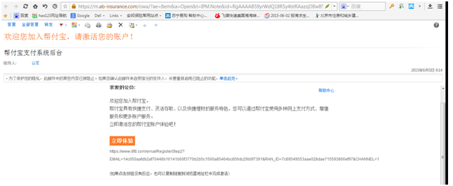 登陆公司邮箱看到激活邮箱,点击邮件链接地址